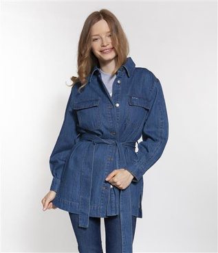 Koszulowa kurtka jeansowa z paskiem EVIAN 6000 BRUSHED USED