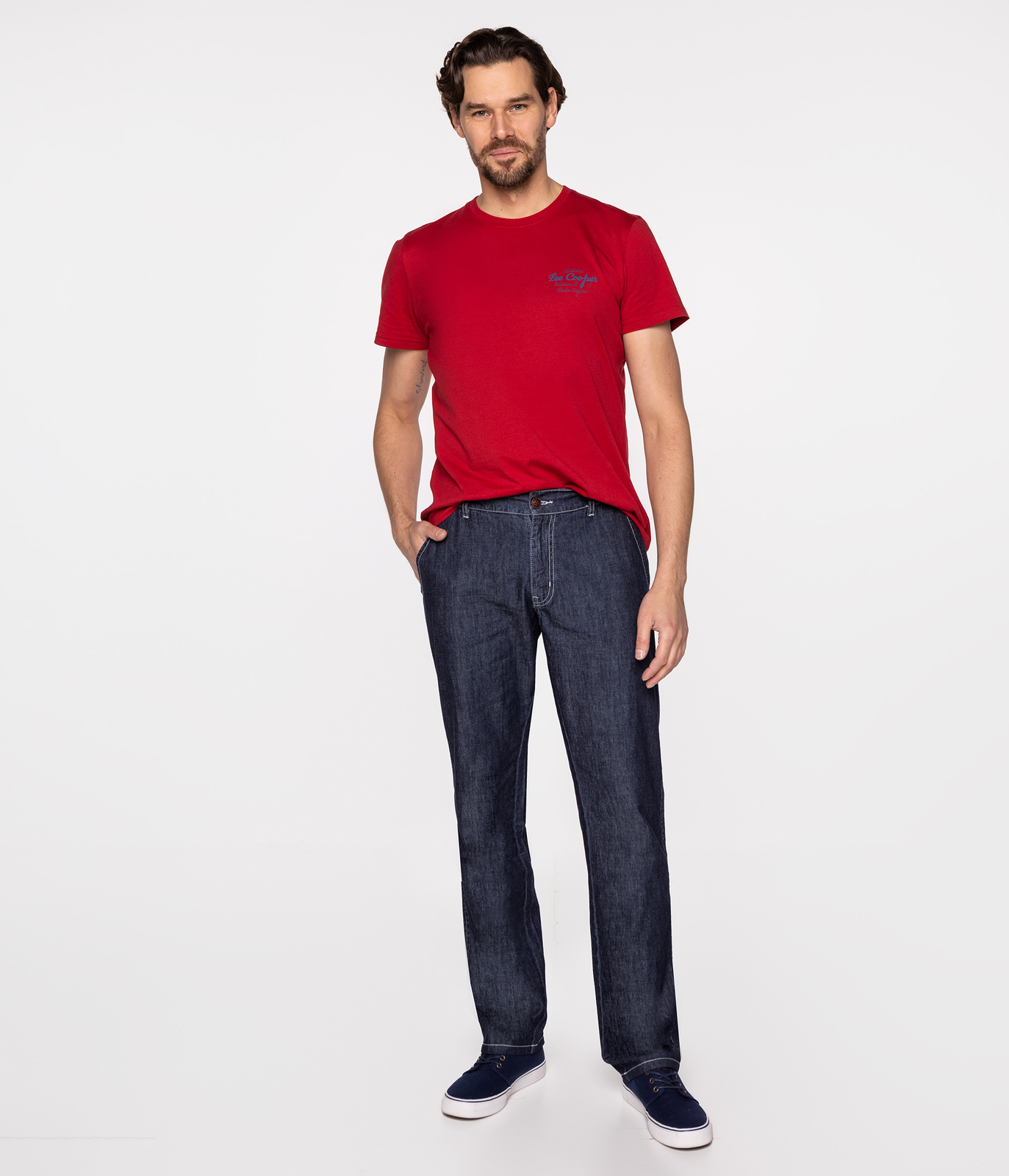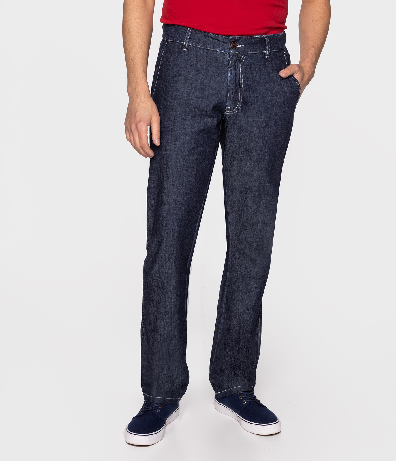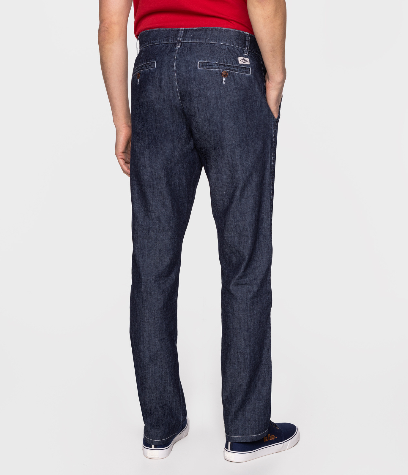 Spodnie męskie z regularną, komfortową nogawką (fason Chino Comfort). Wykonane w 100% z oddychającej bawełny, co zapewnia wysoki komfort noszenia.