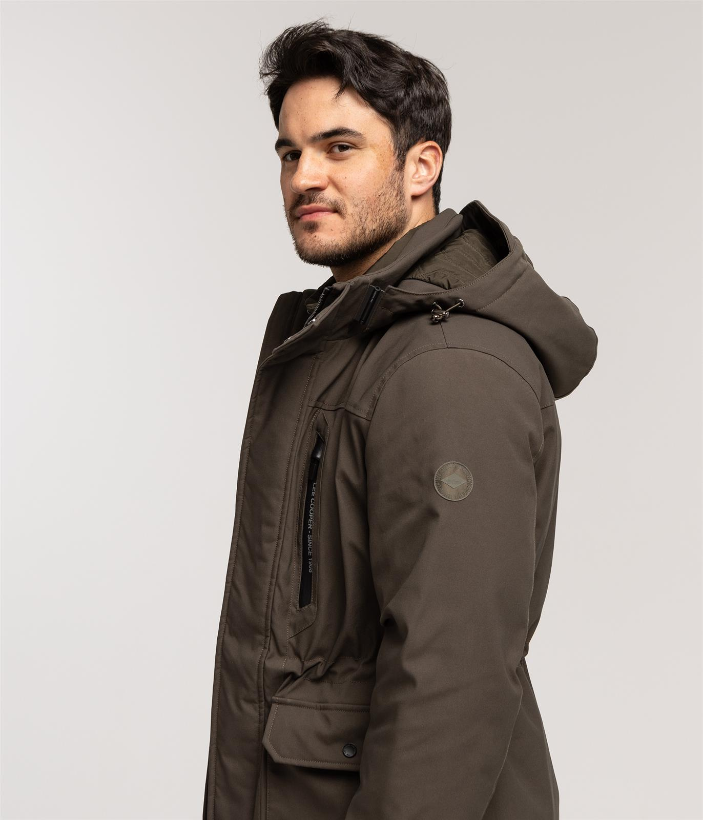 Kurtka M APOLLO w kolorze khaki to dłuższy płaszcz zaprojektowany z myślą o chłodniejszych dniach. Zapinana na zamek z dodatkową klapą chroniącą przed wiatrem, zapewnia skuteczną osłonę przed zimnem. Wyposażona w odpinany kaptur, praktyczny ściągacz w pasie oraz dyskretne logo na rękawie, które podkreśla nowoczesny charakter.
