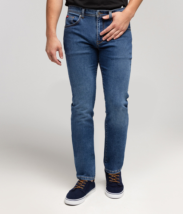 Spodnie męskie typu STRAIGHT to spodnie z prostą i komfortową nogawką oraz średnim stanem. Zostały wykonane z najwyższej jakości elastycznego materiału. Spodnie dzięki temu doskonale dopasowują się do każdego typu sylwetki, a ponadto zapewniają komfort noszenia.