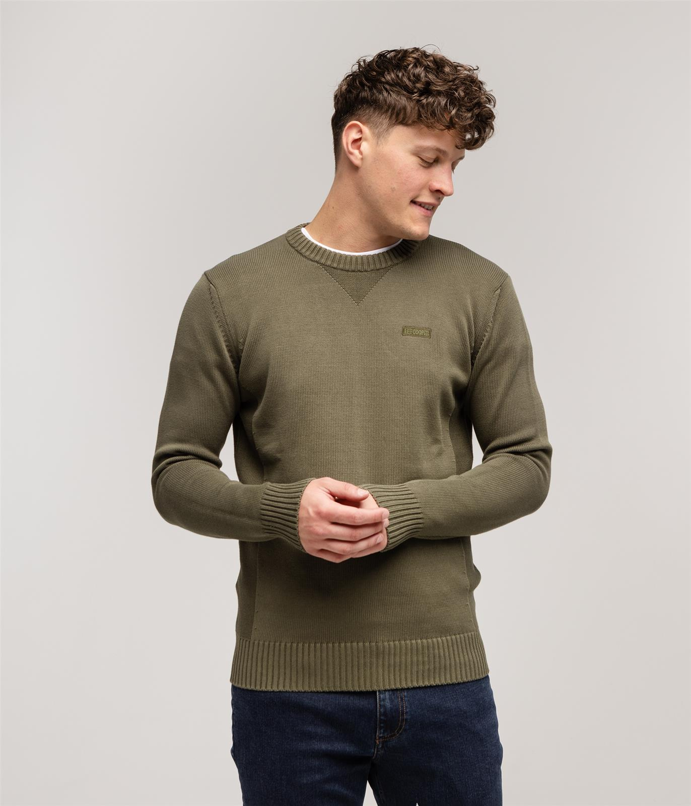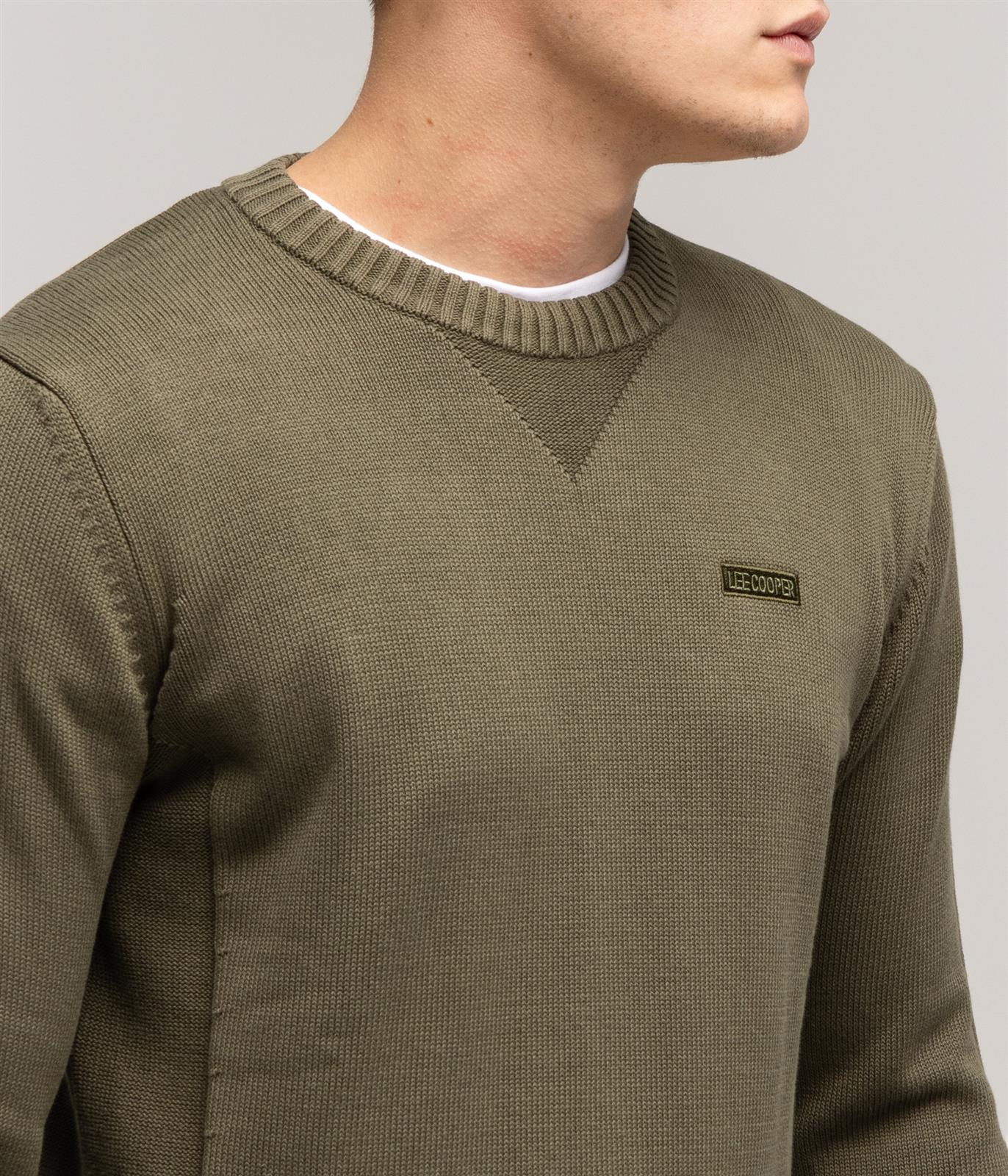 Sweter BILL w odcieniu khaki został wykonany w 100% z organicznej bawełny, dzięki czemu jest wyjątkowo miękki, przewiewny i przyjazny dla skóry. Regularny fason oraz boczne przeszycia zapewniają wygodę i swobodę ruchów. Okrągły dekolt dodaje mu elegancji, a subtelne, wyhaftowane logo na klatce piersiowej podkreśla jego minimalistyczny charakter. Ściągacze w rękawach i u dołu delikatnie modelują sylwetkę.