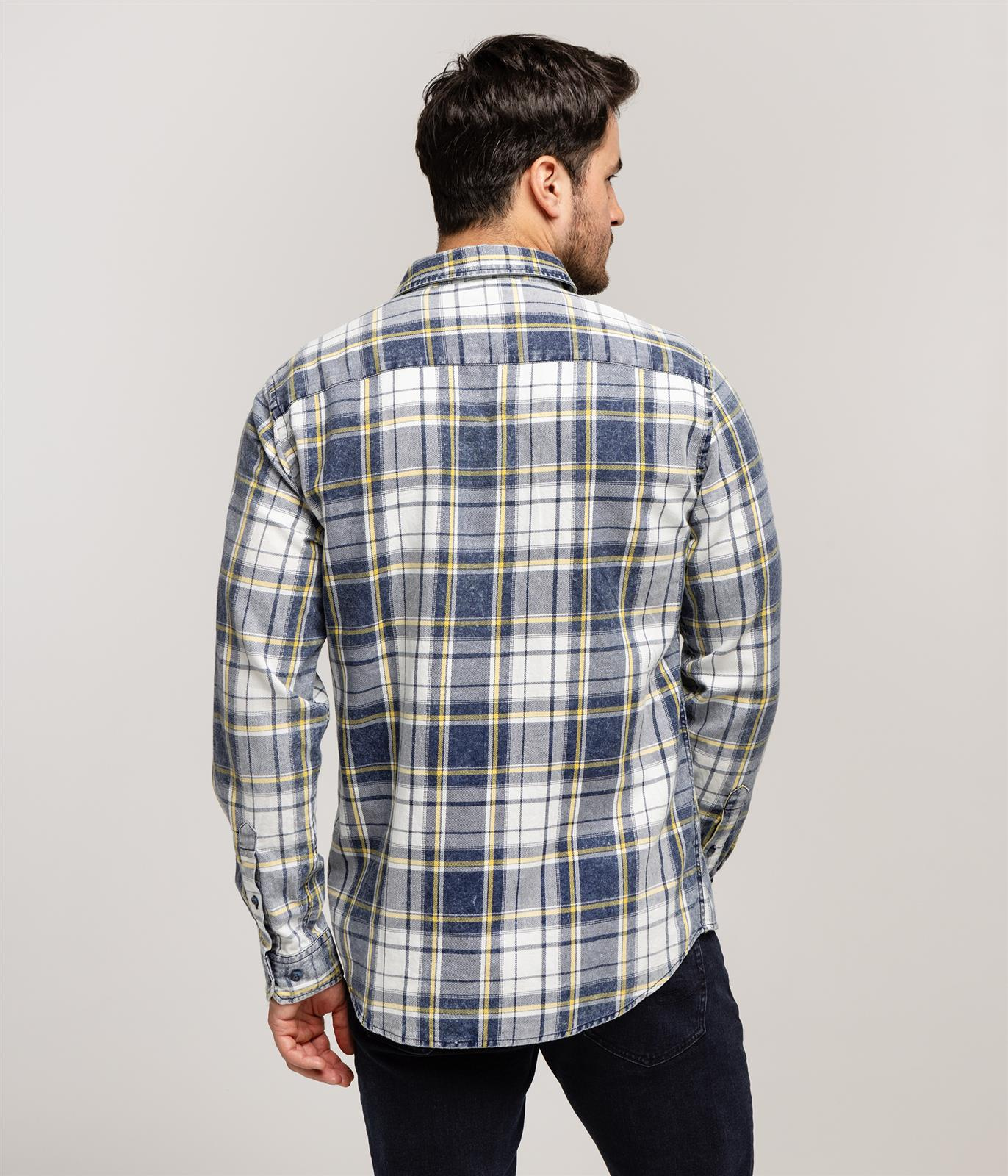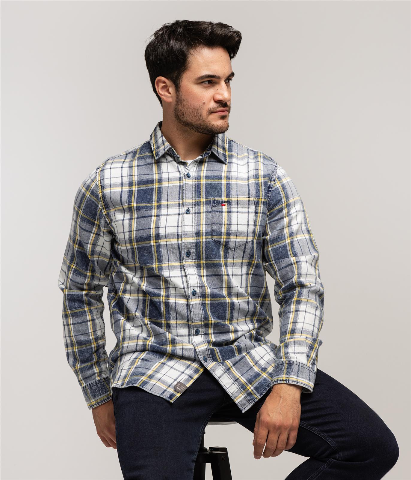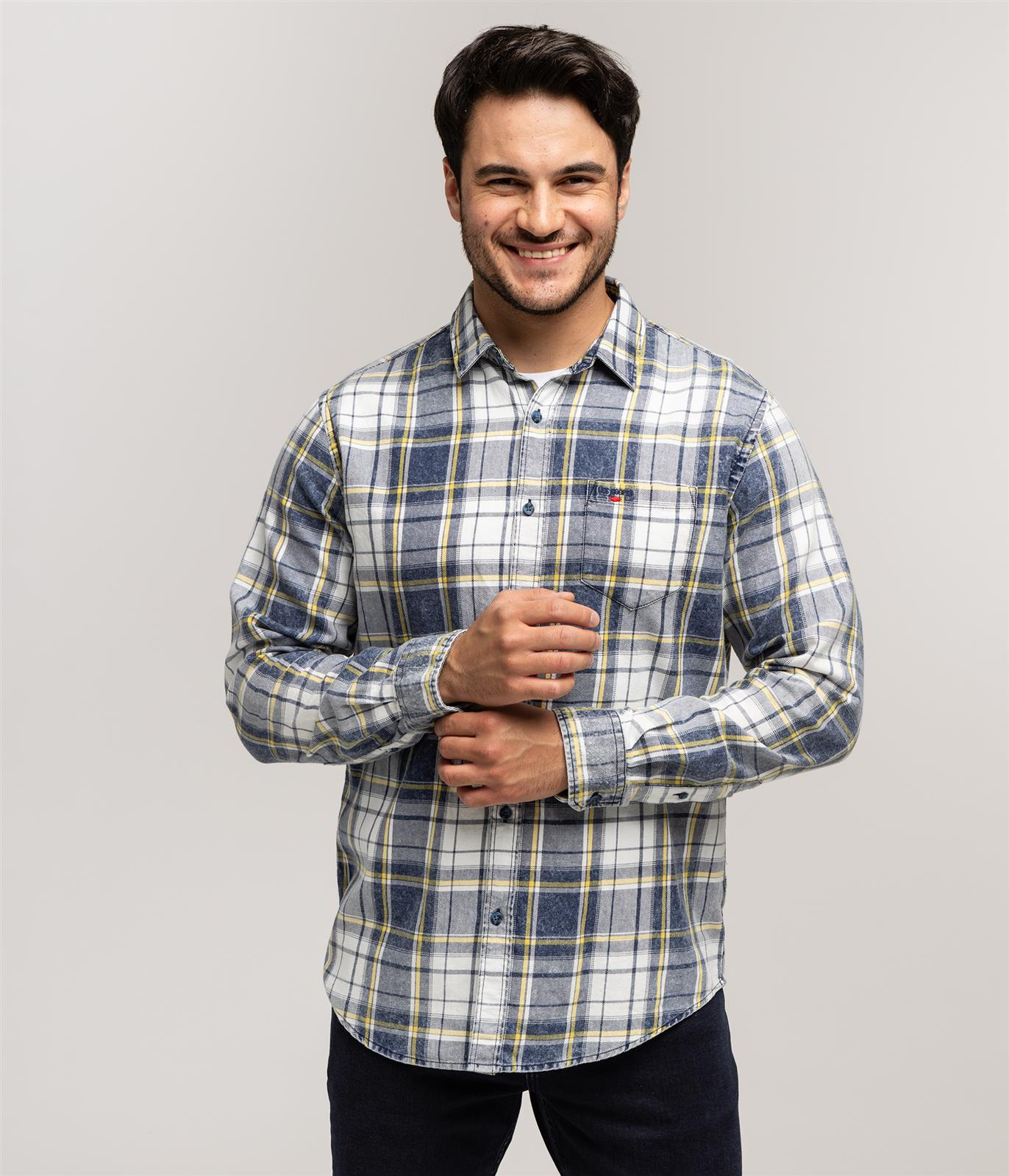 Koszula M WILL w kolorze yellow indigo to propozycja dla mężczyzn, którzy lubią ożywić stylizacje ciekawym kolorem. Uszyta ze 100% bawełny w kroju regular fit, zapewnia komfort i swobodę ruchów przez cały dzień. Efekt vintage wash nadaje jej lekkiego, spranego wyglądu, a delikatne logo na kieszonce dodaje dyskretnego akcentu.
