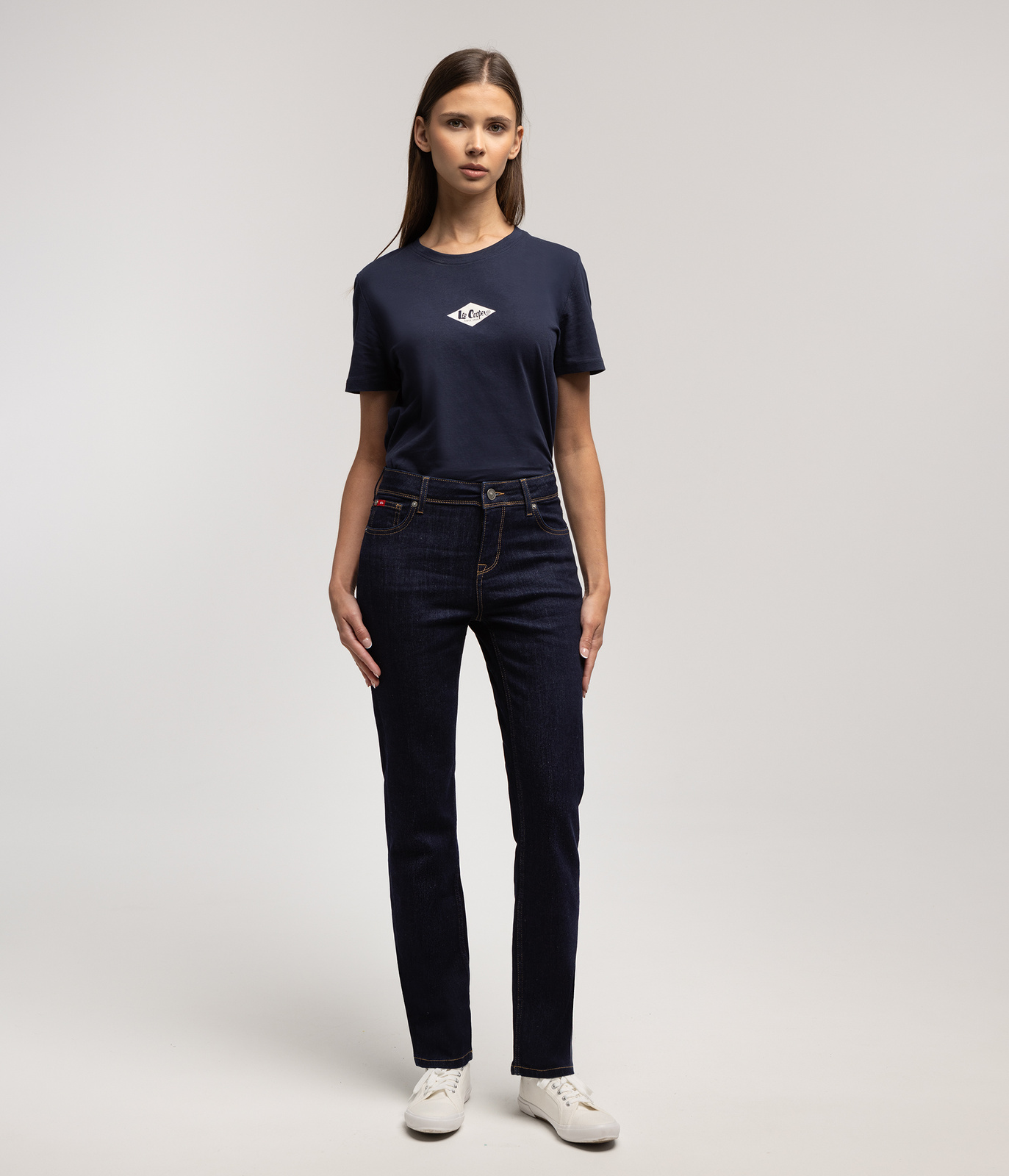 Te damskie jeansy to propozycja dla osób, które cenią klasyczny wygląd i wygodę na co dzień. Regularny krój z prostą nogawką sprawia, że spodnie mają ponadczasowy charakter, a podwyższony stan pięknie modeluje sylwetkę i podkreśla talię. Dzięki dodatkowi elastanu jeansy są elastyczne i dopasowują się do ciała, gwarantując swobodę ruchów i komfort przez cały dzień. Ciekawy, ciemniejszy odcień denimu dodaje elegancji i sprawia, że łatwo dopasujesz je do różnych stylizacji.