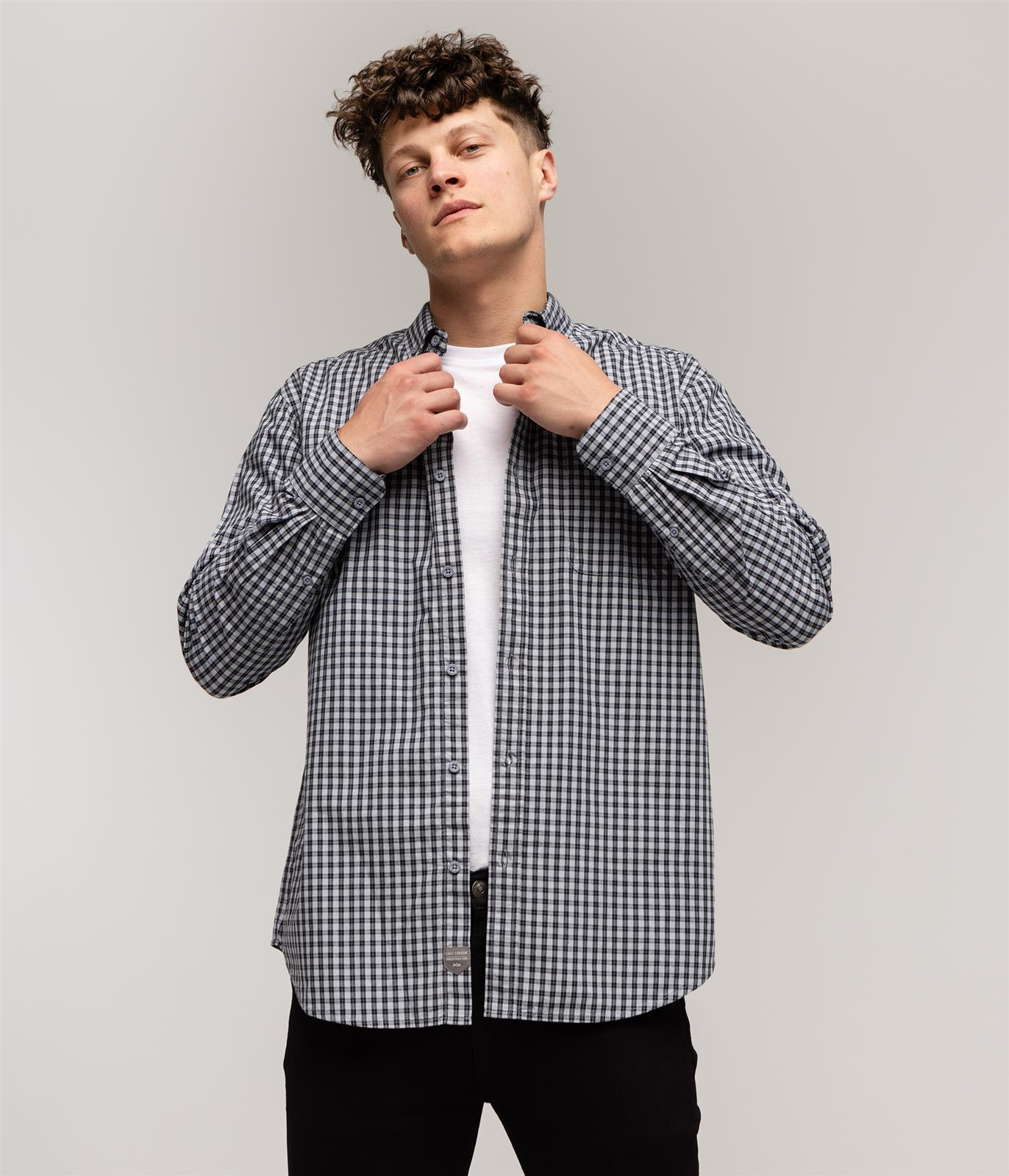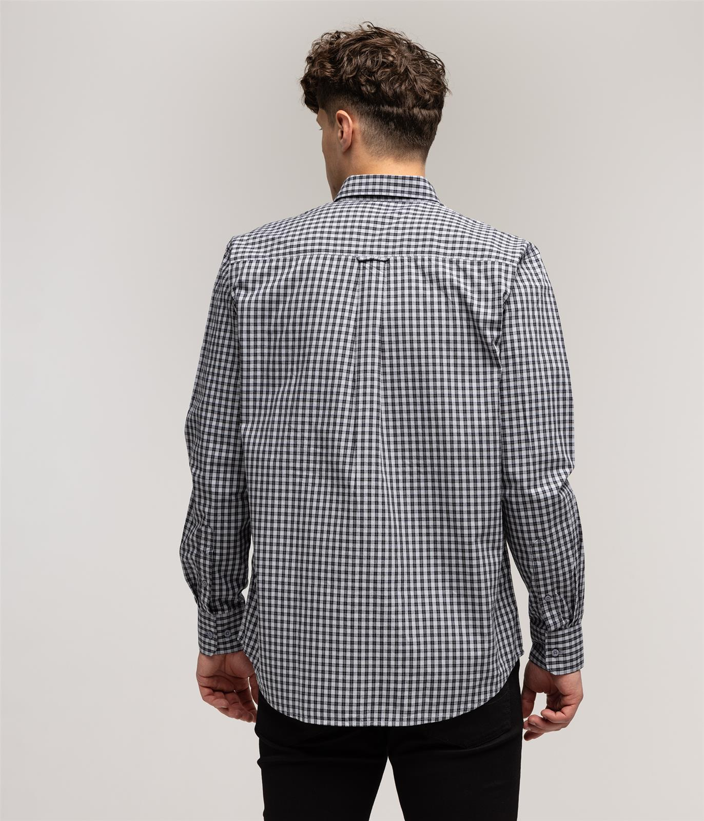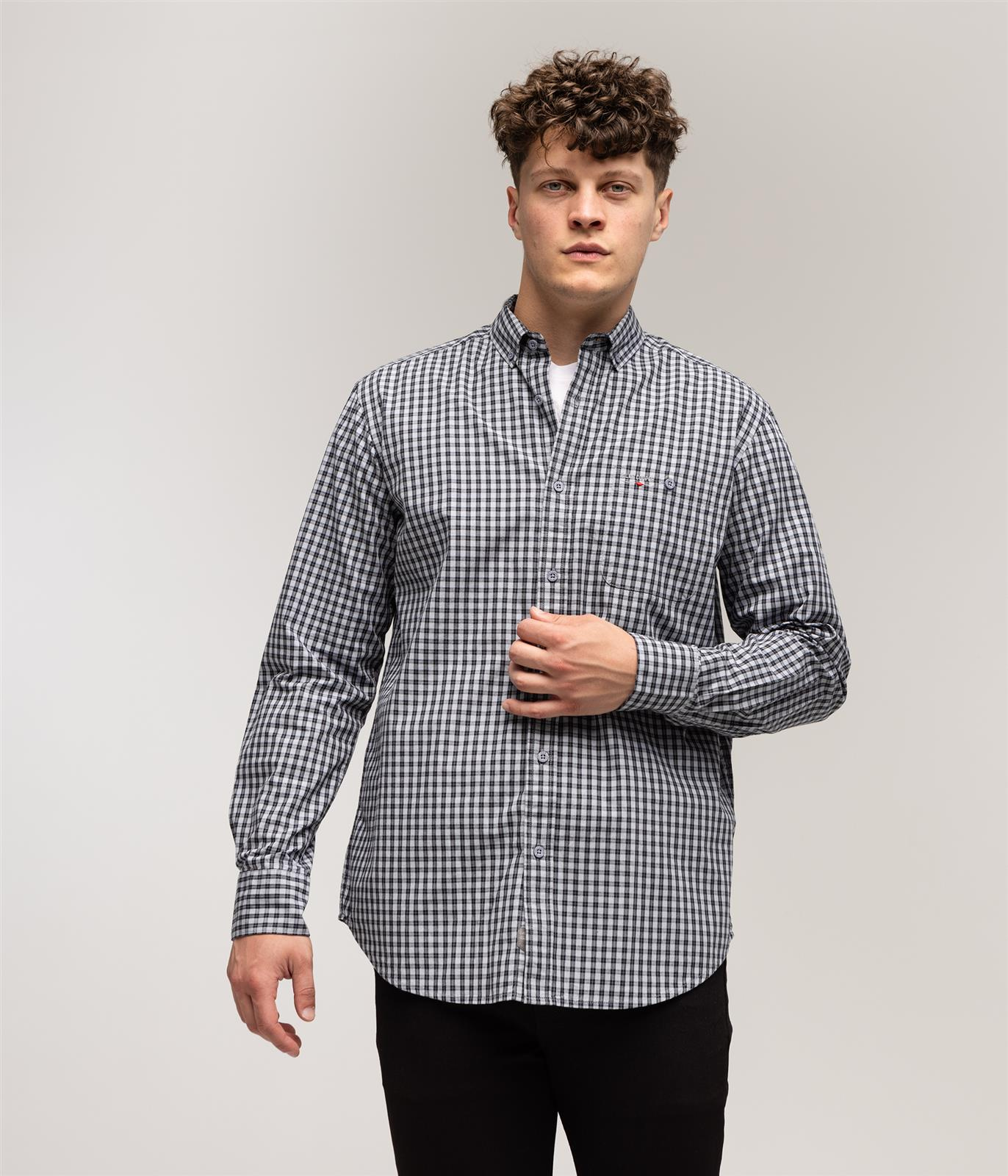 Ta męska koszula w szarą kratkę to idealna propozycja dla osób ceniących wygodę i uniwersalny styl. Fason comfort fit zapewnia swobodę ruchów, dzięki czemu koszula sprawdzi się zarówno w codziennych, jak i bardziej formalnych stylizacjach. Wykonana w 100% z naturalnej bawełny, gwarantuje przewiewność i komfort noszenia przez cały dzień. Detale, takie jak kołnierzyk button-down, kieszeń na guzik oraz delikatny haft z logo, dodają jej ponadczasowej elegancji.