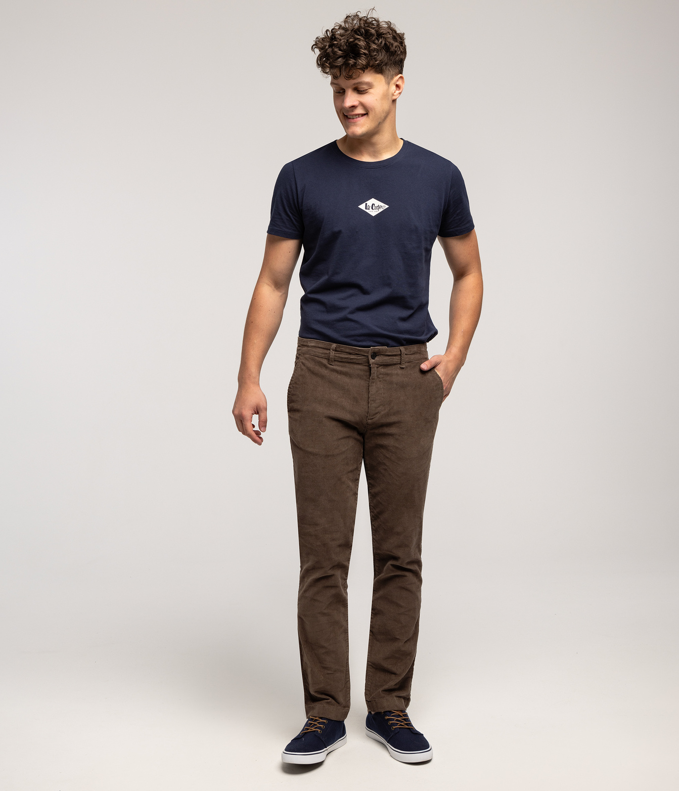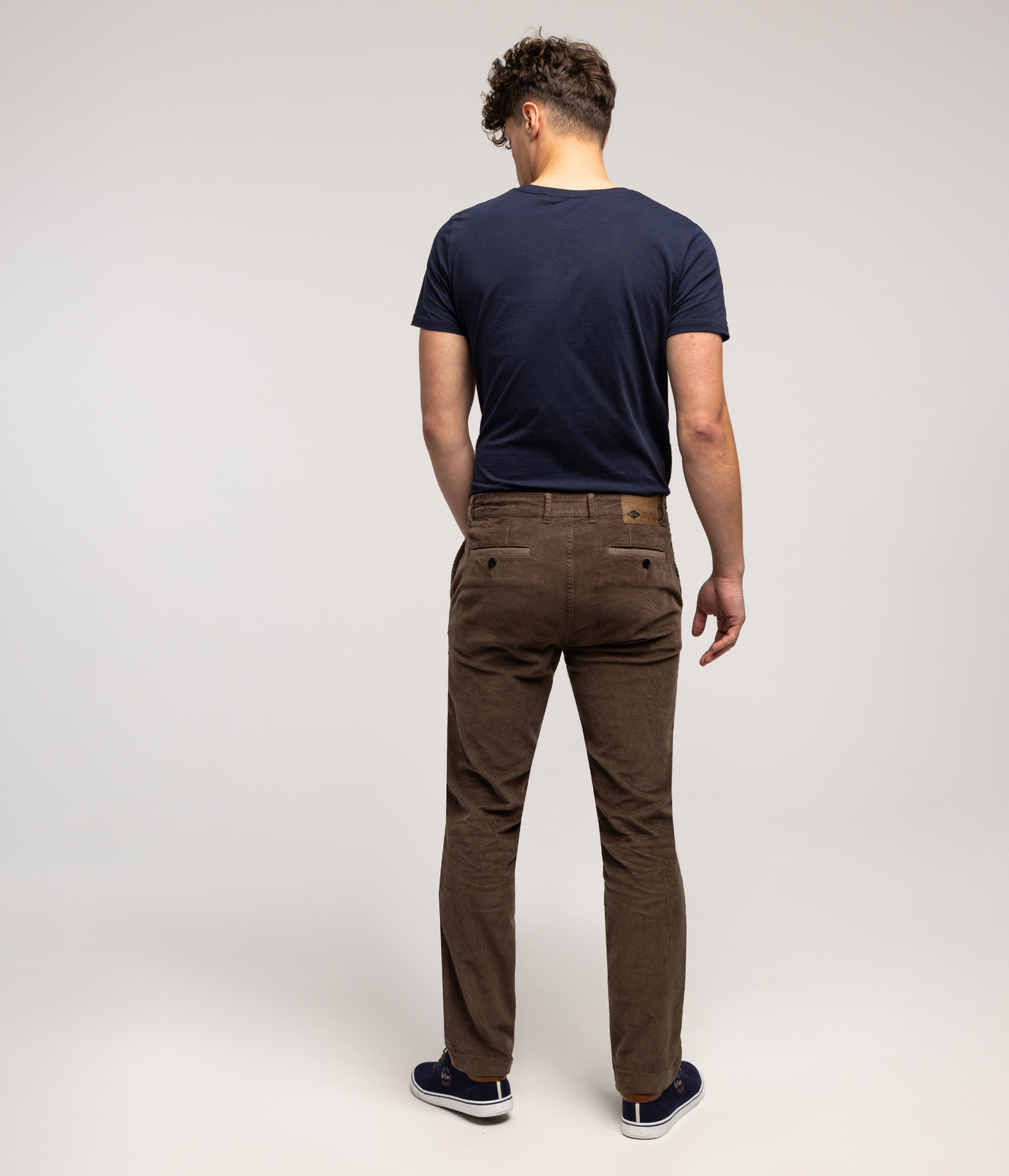 To spodnie dla mężczyzn, którzy cenią sobie klasyczny wygląd z nutą luzu. Kolor Fungi sprawia, że z łatwością dopasujesz je do innych elementów garderoby, a sztruksowa tkanina dodaje całości charakteru i sezonowego stylu.