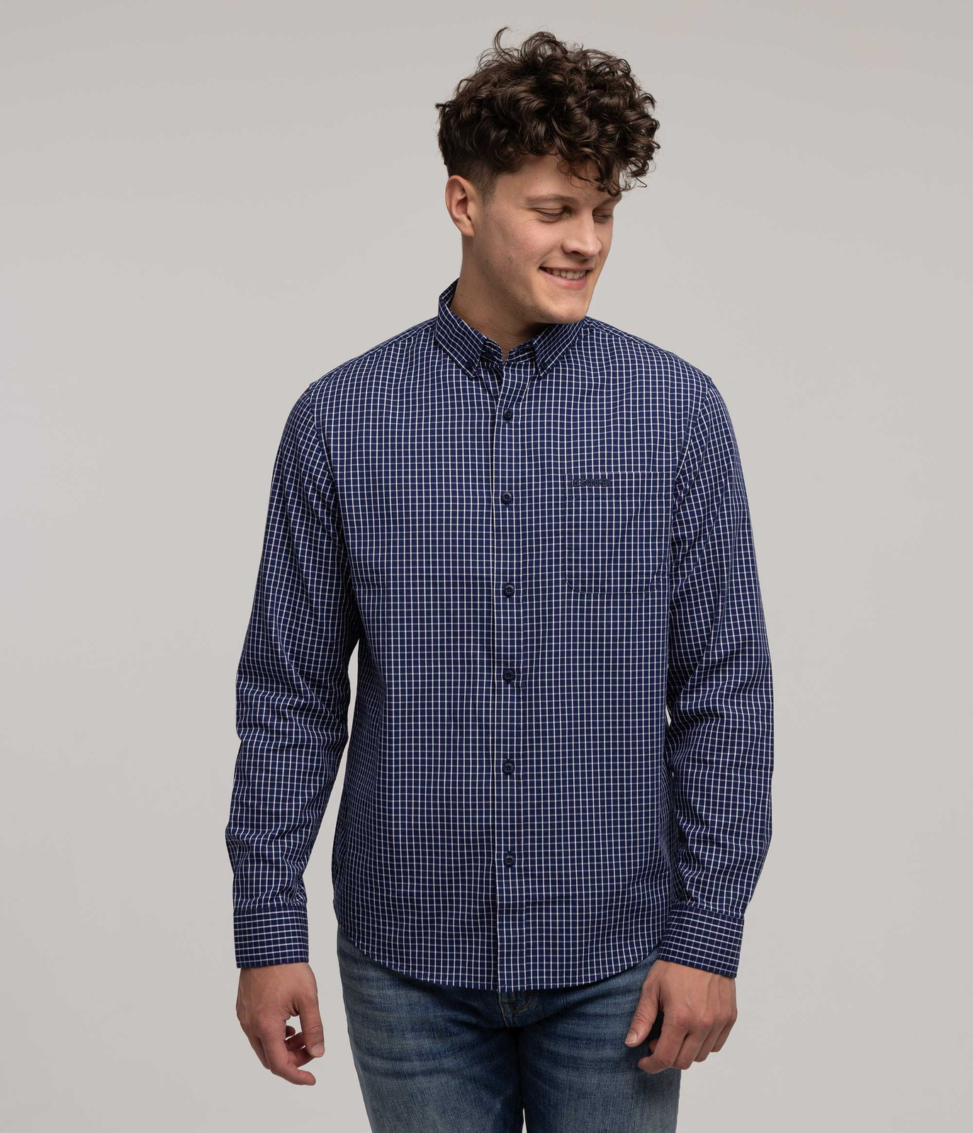 Granatowa koszula o klasycznym kroju to niezastąpiony element męskiej garderoby. Wykonana w 100% z wysokiej jakości bawełny, zapewnia komfort, przewiewność i trwałość przez cały dzień. Kołnierzyk typu button-down nadaje jej elegancki, ale swobodny charakter. Duża kieszeń z wyszywanym logo na lewej piersi to detal, który podkreśla markowy styl i dbałość o szczegóły.