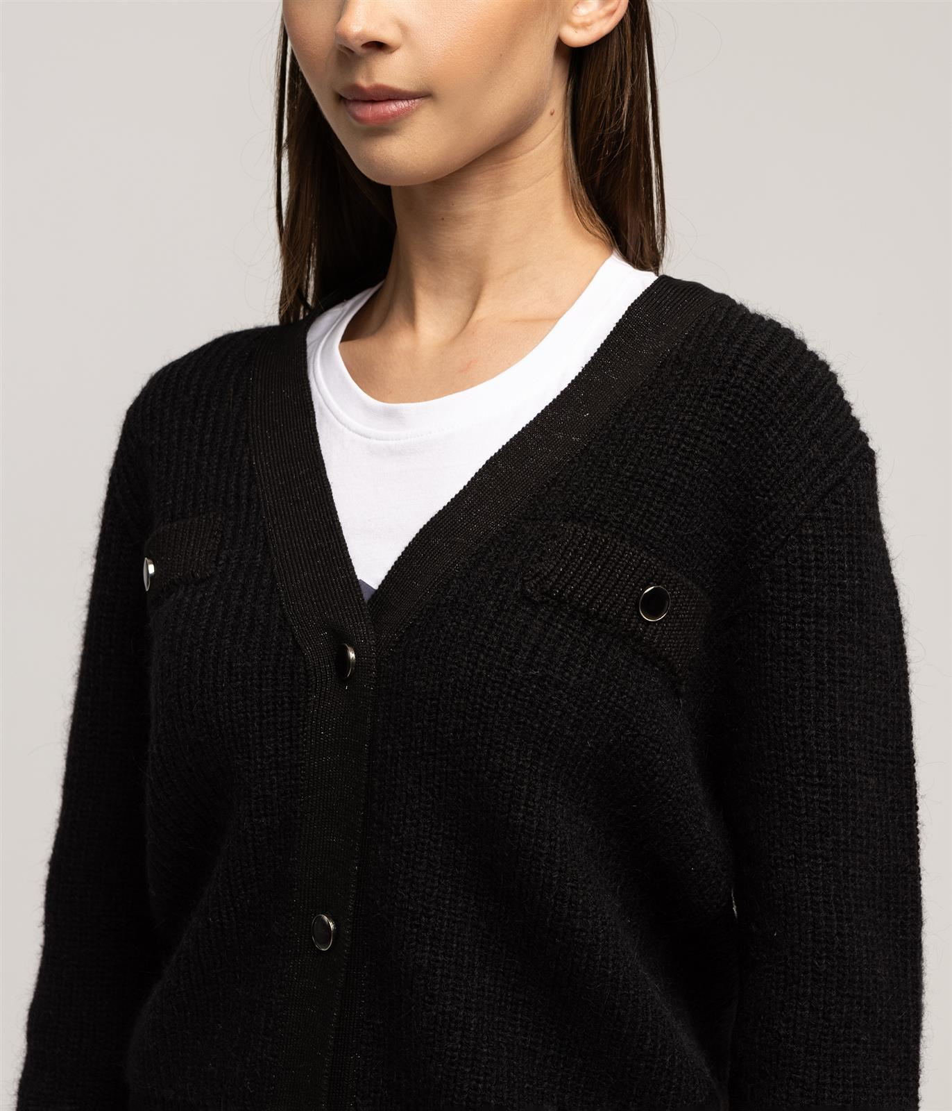 Kardigan z wełną z alpaki SONG 7084 BLACKKardigan z wełną z alpaki SONG 7084 BLACK